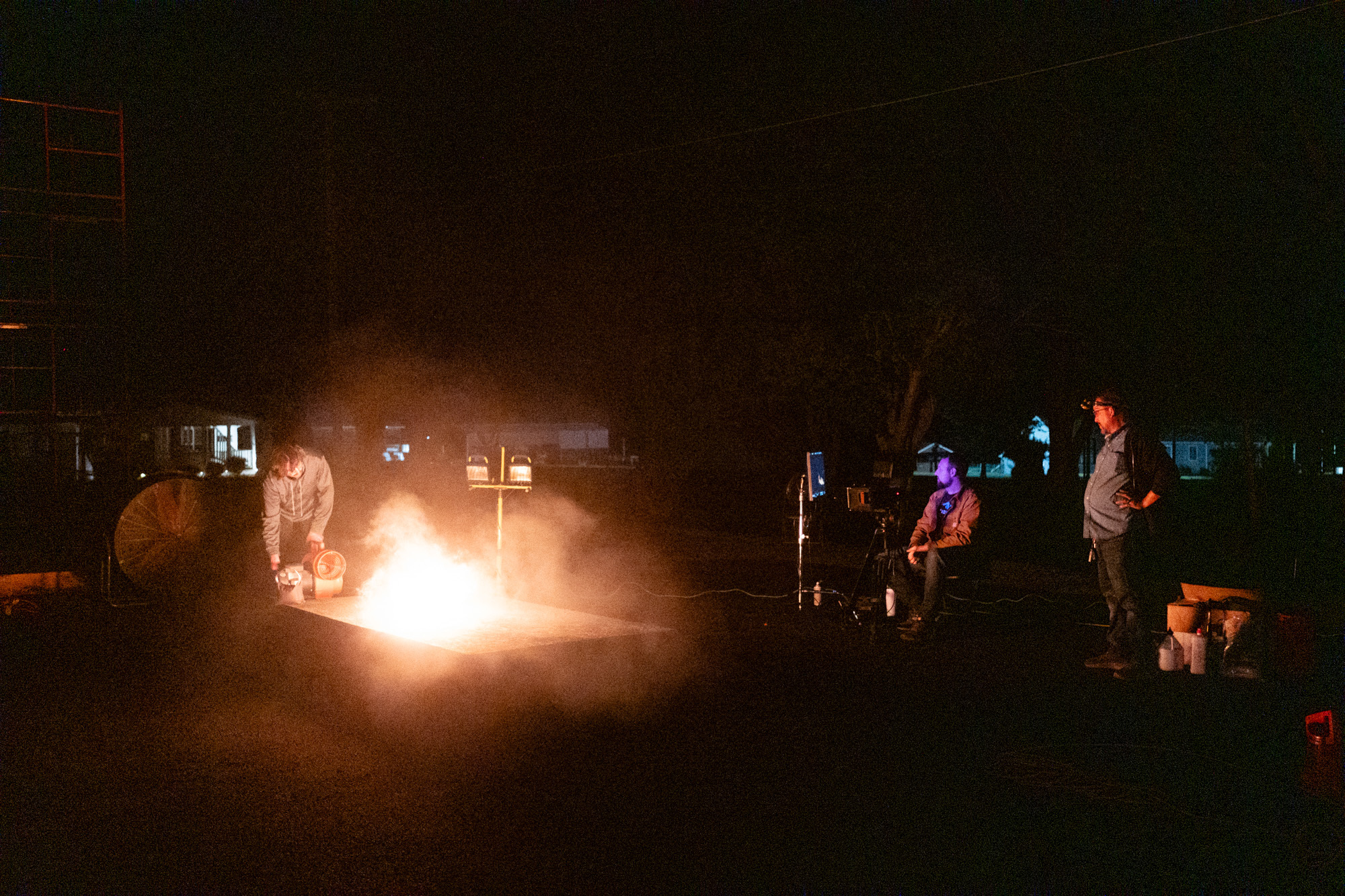 With a full FX team on set and a pyrotechnician leading the fire rigs, we dialed in specific fuel types and wind speeds to push flame behavior across a wide range — all while maintaining safety and control.